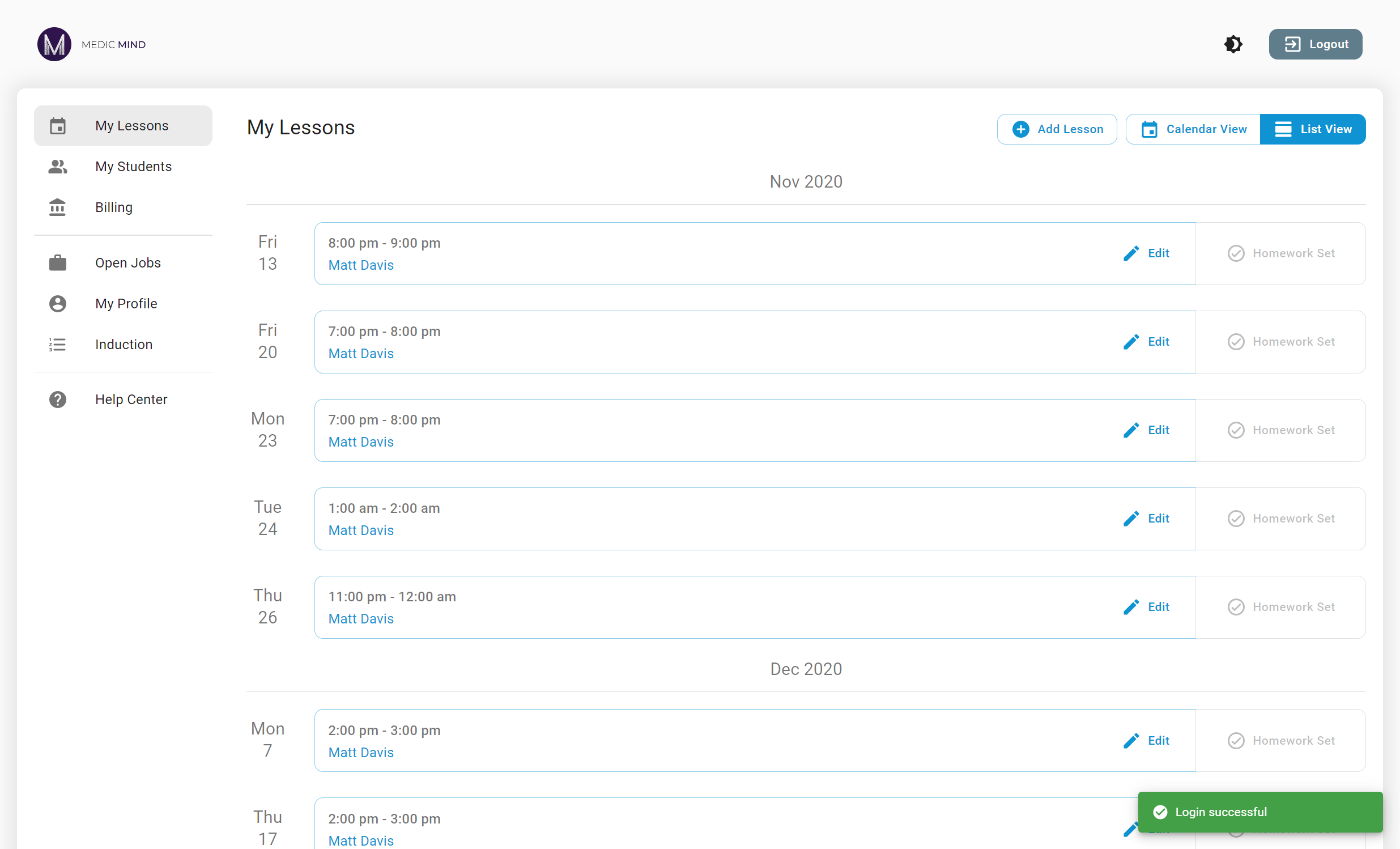 This booking system was contracted by Medic Mind and now facilitates over 1000 bookings per week. It allows tutors to book lessons with students, deducting hours from the student's balance. Through Stripe integration students are able to purchase more hours that are automatically added to their balance. My scope includes the entire project ranging from design, frontend, backend to devops.