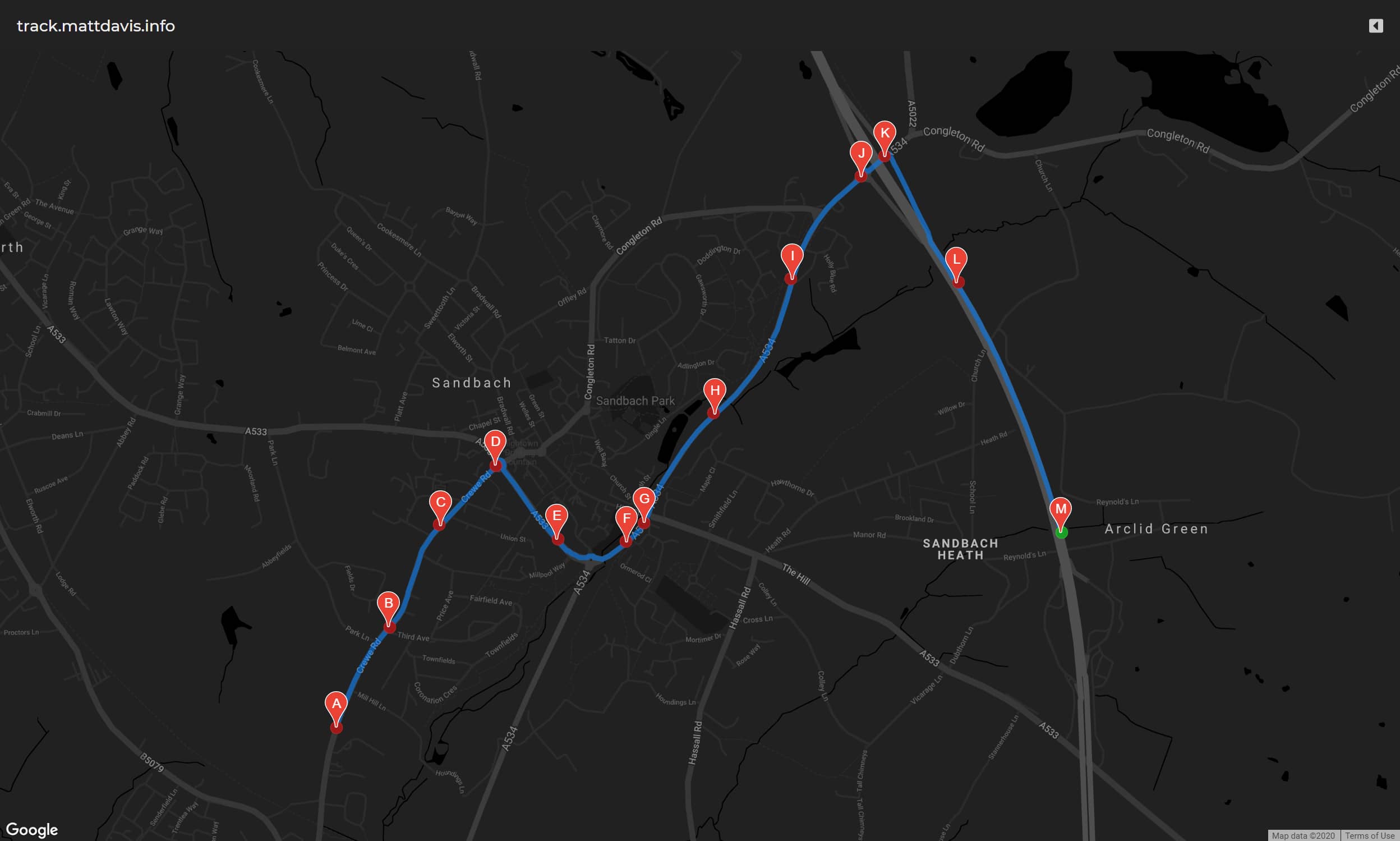 An Arduino GPS tracking solution that uses a GSM SIM module to transmit location data to a web dashboard. The web dashboard uses the Google Maps JavaScript API to provide an overview of the device's travelled route.